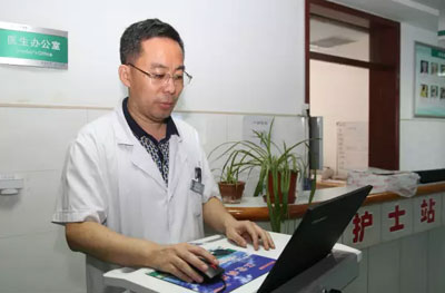 在呼吸內(nèi)二科,科主任韓先章已經(jīng)查完房在寫(xiě)病歷。說(shuō)起移動(dòng)查房,韓先章說(shuō):用移動(dòng)查房車,各種檢查一目了然,比翻病歷方便多了;看完病人立即下醫(yī)囑,又快又不會(huì)遺漏,我每次查房至少可以節(jié)約一個(gè)小時(shí)。而且無(wú)紙化辦公,節(jié)約了大量紙張,真是一舉多得。